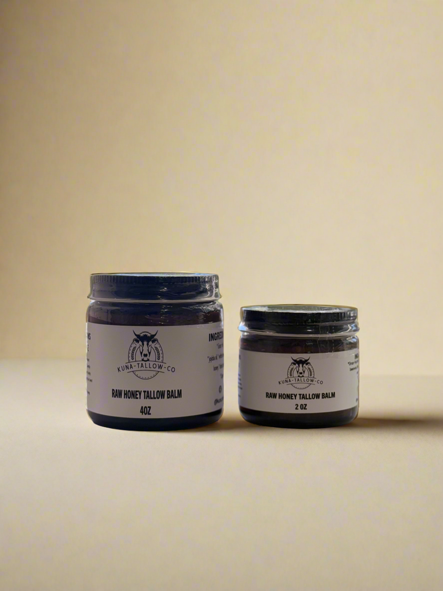 Our raw honey tallow balm is amazing for addressing many skin conditions like minor cuts, cracked dry skin, eczema, bug bites, tattoos, and more! Experience this all in one nourishing balm.
